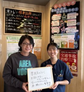 そこで、健康な身体をキープするためにも、施術後では姿勢や普段の身体の動き、生活習慣の見直しや、元気で健康な毎日を過ごせるようアドバイスをいたします。