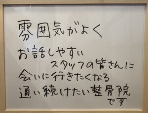 人として当たり前の、思いやりを持つ事や、人を敬う気持ちなど基本を全スタッフが意識して徹底し、痛みを抱えて来られたかたが笑顔で帰宅され、また安心してお越しいただける整骨院であることを常に心掛けております。